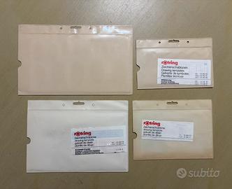 4 Stencil vintage della Rotring in plastica trasparente arancione,mai utilizzati,da collezione privata.