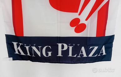 Stendardo pubblicitario originale giapponese proveniente da una sala giochi pachinko/pachislot “King Plaza” (キングプラザ). Si tratta di un telo plastificato di grandi dimensioni, 270 x 88 cm, utilizzato come banner promozionale e di benvenuto all’ingresso delle sale da gioco. Sullo stendardo campeggia la scritta ようこそ, che in giapponese significa “Benvenuti”, accompagnata dal nome in doppia grafia “KING PLAZA / キングプラザ” e da una vivace illustrazione fumettata che raffigura un personaggio con corona in testa e pollice alzato, simbolo di accoglienza e fortuna. Il design è tipico della comunicazione visiva giapponese dei primi anni 2000 e riflette lo stile colorato e accattivante con cui venivano decorate le sale di pachinko, uno dei passatempi più popolari in Giappone. Oggetti di questo tipo non erano destinati alla vendita al pubblico ma venivano prodotti in tiratura limitata per l’uso nei locali. Lo stendardo è quindi un pezzo autentico di cultura pop nipponica, legato al mondo dei pachinko, delle slot e delle sale da intrattenimento. Condizioni ottime. Ai lati sono presenti anche i supporti in tela per poterlo attaccare su asta. Visto il materiale (telo plasitcato - acrilico) può essere esposto anche esternamente. Dimensioni 270 x 88 cm (circa).