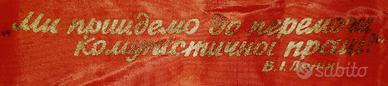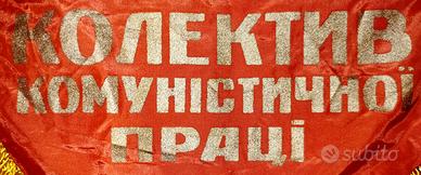 Vendo stendardo premio originale della Repubblica Socialista Sovietica Ucraina, databile agli anni '80, prima della caduta del Muro di Berlino (1989). 📜 Tipologia: gagliardetto/stendardo in tessuto premio, assegnato a brigate di lavoratori per meriti nella "competizione socialista" 🎨 Raffigura: ritratto di Lenin in oro, scena industriale (fabbriche, gru), citazione leniniana in ucraino 📝 Scritta: "Ми прийдемо до перемоги Комуністичної праці!" — В.І. Ленін ("Arriveremo alla vittoria del lavoro comunista!" — V.I. Lenin) + "КОЛЕКТИВ КОМУНІСТИЧНОЇ ПРАЦІ" ("Collettivo del lavoro comunista") 🧵 Materiale: raso rosso con frangia dorata, stampa serigrafica ✅ Oggetto autentico d'epoca — non una ristampa o souvenir ✅ Testo in lingua UCRAINA (non russo) — RSS Ucraina ✅ Condizioni buone per l'età (~40 anni), lievi segni del tempo visibili in foto. Pezzo raro di propaganda sovietica autentica, molto ricercato dai collezionisti di memorabilia URSS. 💶 Prezzo: € 40