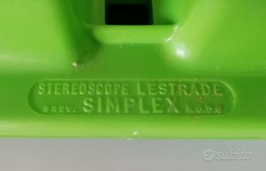 Stereoscoppio marca L'estrade, corredato di cinque schede di positivi. Ancora in confezione originale.