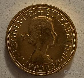 Sterlina in oro Anno 1964 Peso (grammi): 7,98 Oro puro contenuto (grammi): 7,3224 Purezza: 916.7 Dimensioni: Diametro: 22.05 mm