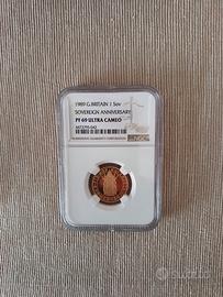Gran Bretagna, Elisabetta II (dal 1952): sterlina 1989 "500° anniversario della sovrana in oro", tipologia rara e sempre più ricercata. In slab NGC