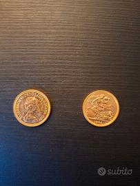 Due sterline d'oro (Sovrane) con effigie Regina Elisabetta II sul dritto e San Giorgio che uccide il drago sul rovescio - anno 1974.