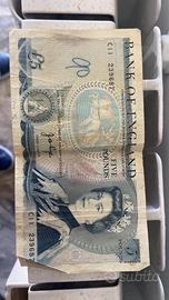 Banconote inglesi da 5 e 10 sterline, in buone condizioni. - Due banconote da 5 sterline. - Una banconote da 10 sterline. - una banconota da 20 dollari