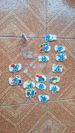 Lotto di stickers dei Puffi, ideali per decorazioni o da collezione. Stickers con diversi personaggi dei Puffi in pose divertenti (Puffo musicista, Puffa, Puffo con libro, Puffo con mantello, Puffo con attrezzi e altri). Inclusi anche i gancetti trasparenti per il fissaggio. Ottime condizioni. Vendibili in lotto, prezzo trattabile