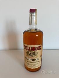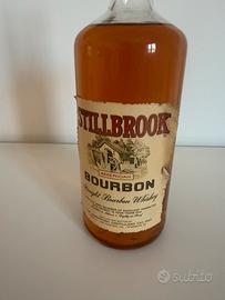 Stillbrook American Bourbon Straight Bourbon Whisky 4 years old - Distilled and bottled by The American Distilling Co. Inc. - Bottiglia vintage ante 1980 - etichetta leggibile lievemente scollata su un lato e piccola parte mancante sul collo della bottiglia
