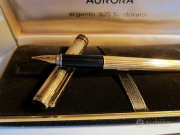 Ottima stilografica AURORA in argento 925 dorata, scatola originale. NO TUTTOSUBITO.