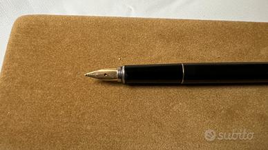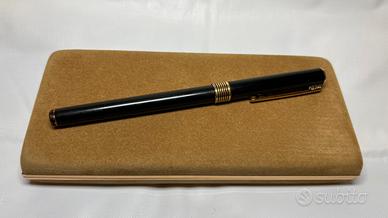 Splendida penna stilografica Aurora modello Marco Polo originale degli anni '80, autentico pezzo di design Made in Italy caratterizzato da una linea "slim" estremamente elegante. Il corpo è realizzato in pregiata lacca nera con finiture e clip placcate in oro 18 carati. La penna è in buone condizioni estetiche un pó vissuta viene venduta completa del suo corredo originale, inclusa la custodia in velluto color sabbia e il certificato di garanzia dell'epoca che ne attesta l'autenticità. Presenta i normali e lievi segni del tempo sulle dorature che ne confermano l'originalità e il fascino vintage. Il pennino dorato garantisce una scrittura precisa, ideale per agende o come raffinato accessorio da taschino. Un oggetto di classe perfetto per collezionisti o come idea regalo senza tempo.