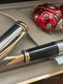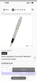 Questa lussuosa stilografica modello Townsend, Medalist ha fama mondiale, un'icona del marchio Cross, perchè è stata notoriamente utilizzata da diversi Presidenti degli Stati Uniti ed è usata dagli scrittori professionisti. Questo modello ha una finitura bicolore, che abbina il cromo lucido alla lussuosa placcatura in oro 23 carati. Il pennino anche è placcato in oro 23 carati. La carica è a cartucce o può essere convertita per l'uso con inchiostro in bottiglia (il convertitore originale Cross è in omaggio, nonostante sia venduto separatamente). Fornita in una lussuosa confezione regalo Cross, in simil pelle con velluto e cassetto (sotto la penna). Coperta dalla garanzia a vita Cross contro i guasti meccanici. (Per spiegarne il valore alleghiamo la foto del sito Cross, con il prezzo senza converter). Stante il valore la penna viene spedita solo a clienti con adeguate valutazioni. È parte di una grande collezione di un gentiluomo che abbiamo l'onore di trasferire a persone ricercate. Date un'occhiata, se credete, alla bacheca di penne esclusive (basta cliccare su EXCLUSIVA). Buona scelta