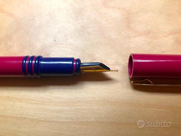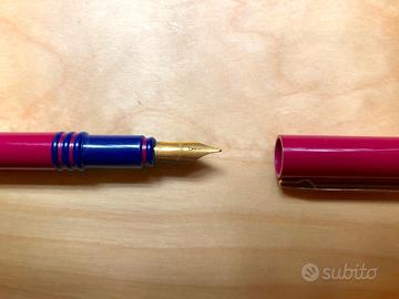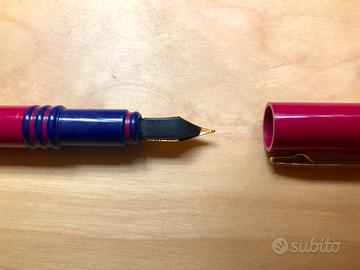 Stilografica e penna come da foto, usate ma ben conservate, visibili segni sulla superficie. La penna presenta ingiallimento della plastica bianca e qualche punto di inchiostro sul verde nella parte terminale della penna (non visibile in foto).