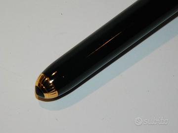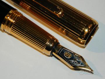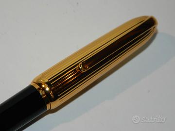 La clip presenta il logo Cartier e l'anello centrale reca l'incisione "Made in France" e "Louis Cartier". Il design classico conferisce alla Louis Cartier "Dandy" un look esclusivo che rispecchia la celebrazione e lo spirito della Maison Cartier. Penna stilografica prodotta sino al 2006 oggi fuori produzione quindi ricercata da amatori e collezionisti. La penna utilizza un meccanismo di caricamento a cartuccia/converter (incluso) e ha un pennino in oro 18 carati di misura media. La stilografica è corredata da scatola, controscatola, e certificazioni. Fa parte della mia collezione, mai inchiostrata, perfetta.. Prezzo non trattabile. Possibilità di consegna a mano Milano città.