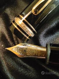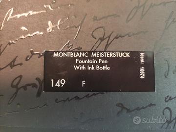 Montblanc Meisterstuck 149 F stilografica con pennino in oro 18k completa di bottiglietta di inchiostro. Cofanetto e imballo originale. Nuova, mai usata