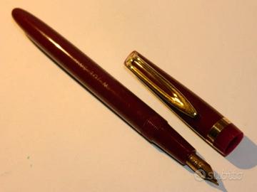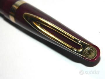 Stilografica vintage Waterman's modello NW2 made in England anni 60. La stilografica è pari al nuovo, mai inchiostrata, colore bordò con finiture dorate. Tappo a vite, caricamento a cartuccia, pennino originale Oro 14 Kt. tipo W-2B misura #M (Medio). Lunghezza totale chiusa Cm. 13,5 diametro del barile Cm. 1. Possibilità di ritiro a mano Milano città