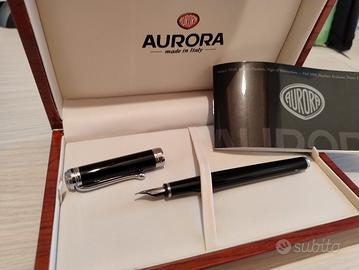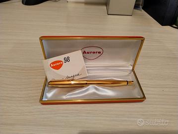 - Aurora 98. Condizioni buone. Stilografica usata molto ma con cura. Pennino in oro 14 carati. Corpo in metallo laminato oro. Prezzo 90,00