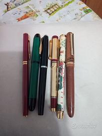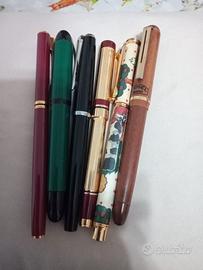 Vendo a collezionisti o appassionati N. 6 stilografiche,Waterman,Iridium poin,Genius Iridium,Stypen,Camel,Pelikano nera. + N.2 Biro Aurora,+ N.3 Parker,il tutto come da foto,solo in blocco.