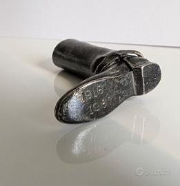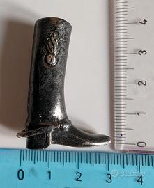 Piccolo Stivaletto in metallo, cimelio probabilmente del 1° Reggimento Nizza Cavalleria Esercito Italiano. (Confermarmelo voi collezionisti per favore). Sotto incise le date 1916 1987 Dimensioni 3 x 4 cm.