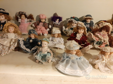 Vendo in stock bambole di porcellana varie misure, alcune ancora nella scatola e mobilio in miniatura per casa delle bambole.