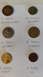 Vendo 20 monete, in buone condizioni, provenienti da vari Paesi: Repubblica Ceca: 10-20-50 corone Bulgaria: 2-50 stotinki Marocco: 1-2 dirham Giordania: 1/2 dinaro Ungheria: 10-20-50-100 fiorini Uk: 1-2-5-20 pence Emirati Arabi: 1 dirham Svezia: 5 corone Usa: 1 cent Cuba: 25 centavos