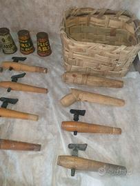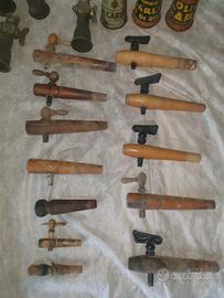 serie di 16 di rubinetti spine d'epoca di varie dimensioni per botti da vino .