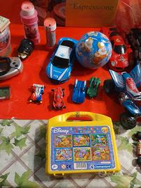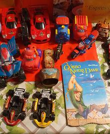 vari articoli vintage: macchinine radiocomandate- stampini Uomo Ragno - pistola a retromarcia Superman - orologio Uomo Ragno - ecc..