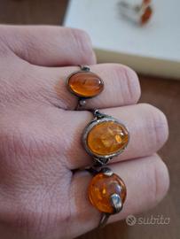 stock gioielli in argento e ambra vera, vintage.Sono rimanenza di negozio . Misura 13/14. ,17,5/18 e 15,5.