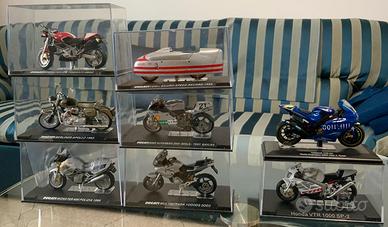 Vendesi collezione completa di n. 40 modellini di moto Passione Ducati con extra n. 4 moto (2 Honda, 1 Yamaha e 1 Suzuki). Faldone n. 1 collegato alla collezione e composto da n. 21 brossure e n. 21 posters relativi alle moto. Modellini Passione Ducati: 1)DUCATI 999 SUPERBIKE 2003 - NEIL HODGSON + POSTER 2)DUCATI 999 TESTASTRETTA 2003 + POSTER 3)DUCATI SUPERSPORT 1000DS FF 2003 4)DUCATI 998s BOSTROM REPLICA 2002 + POSTER 5)DUCATI 916 SENNA 1995 + POSTER 6)DUCATI ST2 1 1997 + POSTER 7)DUCATI 749s 2003 + POSTER 8)DUCATI 750F1 BOT DAYTONA 1986 - MARCO LUCCHINELLI 9)DUCATI 916 SUPENBIKE 1994 - CARL FOGARTY + POSTER 10)DUCATI MH900e 2000 + POSTER 11)DUCATI 888 SP5 1993 12)DUCATI 250 MACH 1 1964 13)DUCATI 450 DESMO 1970 - BRUNO SPAGGIARI + POSTER 14)DUCATI 851 SUPERBIKE 1990 15)DUCATI 851 SUPERBIKE 1990 - RAYMOND ROCHE + POSTER 16)DUCATI 900 IOM TT 1978 - MIKE HAILWOOD® 17)DUCATI DESMOSEDICI 2003 - LORIS CAPIROSSI + POSTER 18)DUCATI 550 SUPERMONO 1993 19)DUCATI 600 PANTAH TT2 1981 - TONY RUTTER 20)DUCATI 916 1994 21)DUCATI SUPERSPORT 1000ds HF 2003 + POSTER 22)DUCATI 996 SUPERBIKE 1999 - CARL FOGARTY + POSTER 23)DUCATI 900 SUPERLIGHT 1994 24)DUCATI 350 Mk3 DESMO 1974 + POSTER 25)DUCATI CUCCIOLO 1946 + POSTER 26)DUCATI 750 SUPER SPORT DESMO 1974 27)DUCATI 125 GRAN SPORT MARIANNA 1956 28)DUCATI 750 DESMO IMOLA 1972 - PAUL SMART 29)DUCATI SCRAMBLER 450 1973 + POSTER 30)DUCATI PANTAH 500 SL 1979 31)DUCATI SCOOTER CRUISER 1952 + POSTER 32)DUCATI 500GP 1971 - PHIL READ + POSTER 33)DUCATI 900SD DARMAH 1979 34)DUCATI MONSTER S4R 2003 35)DUCATI MONSTER S4 FOGARTY 2002 + POSTER 36)DUCATI 100cc SILURO SPEED RECORD 1956 37)DUCATI BERLINER BERLINER APOLLO 1963 + POSTER 38)DUCATI MONSTER 600 POLIZIA 1995 39)DUCATI 996R SUPERBIKE 2001 IMOLA - TROY BAYLISS + POSTER 40)DUCATI MULTISTRADA 1000DS 2003 Modellini Extra: 41)Honda RC211V MAX BIAGGI 2004 42)SUZUKI GSX-R 750 PIERFRANCESCO CHILI 2001 43)YAMAHA YZR M1 - World Champion 2004 rider V. Rossi 44)Honda VTR 1000 SP-2