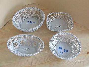 Zuppiere-teiere-anfora- animali vari( delfino-tucano-pantera e altri)-potiche-brocca-portalampada-scatole Limoges-cestini traforati piatti e piattoni e tanti altri soggetti. Materiale ottimo per scuole che fanno corsi di decorazione per terzo fuoco. Valore commerciale più di 3.000 euro - Impossibile mettere tutte le foto- Necessario contatto. Consegna diretta per evitare danni nella spedizione, spese da concordare, quello che si vede è indicativo da non considerare realistico, da valutare in funzione alla destinazione della consegna.