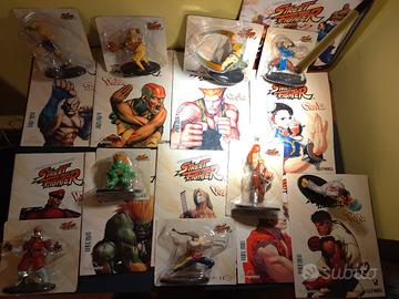 Vendo causa non riuscito completamento della collezione 9 modellini dei personaggi di Street Fighter, con relativi magazine dettagliati per ogni personaggio,un poster di cui sul retro si possono trovare dettagli sulla relativa collezione DeAgostini e tre poster/illustrazioni sui personaggi della serie.