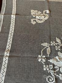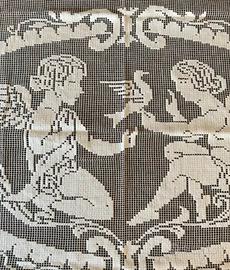 Vendo striscia filet color bianco panna, con ricamo angeli in seta fatto a mano,