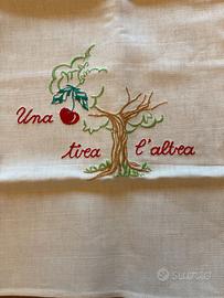 Strofinaccio "Una tira l'altra". Cm 73 x 56. Mai usato. Misto Lino e Cotone. By Lura confezioni.