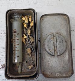 Sterilizzatore medico vintage, siringhe di vetro, contenitore medico, strumenti medici retrò, set completo