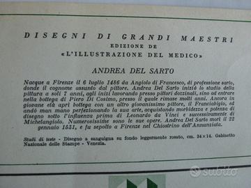 studi di teste di Andrea del Sarto, disegno a sanguigna su fondo rosato, l'opera originale misura 34x14 cm, questa è una stampa su cartoncino in formato 26,5x20 cm stampato negli anni 60, è in perfetto stato di conservazione, costo spedizione 2 euro.
