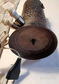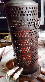 Stufa in ferro battuto marca Beta alimentata a 125 volt tramite resistenza elettrica 600 watt ancora dopo molti anni perfettamente funzionante scalda immediatamente l'ambiente visibile nelle foto 1-4-5-6 la resistenza incandescente ATTENZIONE da usarsi solo a125 volt ! alta 27 cm conservata con cura nel corso del tempo buone condizioni munita di cavo elettrico coevo con bussolotti a femmina per l'alimentazione; dato le sue ridotte dimensioni si può utilizzare pure come un bell'oggetto antico per esposizione una vera chicca per ogni collezionista che si rispetti .Visibile al villaggio olimpico roma nord spedizione ovunque prezzo assolutamente non trattabile dato la rarità e la scarsa reperibilità dell'oggetto in questione contatti pure con watts app