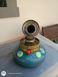 Stufa vintage a cherosene in buone condizioni, molto colorata, funzionante e completa di tutte le sue parti, piccola macchia sul fianco visibile in foto.