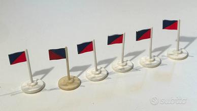 Subbuteo 6 bandierine rosso/blu, C 188, originali anni 80. 12 EURO. Colleziono Subbuteo, ho varie squadre (HW, LW, qualche hybrid e zombie), set box (tra cui Munich 74), accessori, campi e cataloghi da vendere.