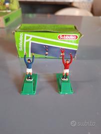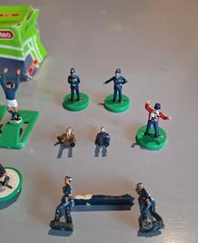 Set misto composto da: coppia battitori calcio d'angolo e laterali con scatola, 2 poliziotti, 2 barellieri (uno da incollare), 1 mascotte Ken Bailey, terna arbitrale base verde (un braccio da incollare), 2 personaggi panchina, 2 pezzi torretta