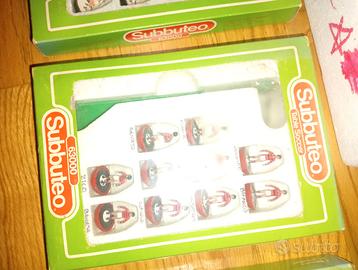 Vendo subbuteo gioco calcio vintage con scatola in buone condizioni completo con in più 3 squadre flamenco squadra brasiliana,Juventus Ascoli portimorense,argentina 86.nella squadra argentina due giocatorini sono un po' rovinati e bandierine campo da mettere apposto il resto e tutto ok se interessati contattarmi.
