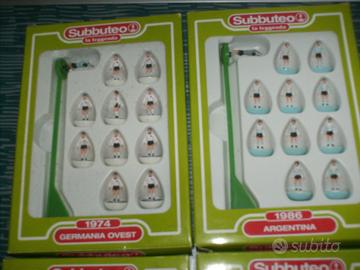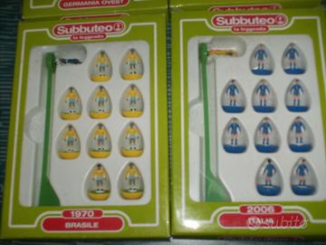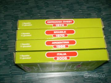 Vendo solo in blocco n° 4 squadre di calcio Subbuteo ( nuove ) + campo di calcio grande ( 90x130 cm circa ) . Le squadre , ( uscite in edicola nel 2009 ) , sono le seguenti : - Germania Ovest 1974 - Brasile 1970 - Argentina 1986 - Italia 2006 Non spedisco , solo consegna mano .