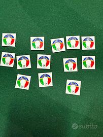 Adesivi per tifosi dell'Italia! Questo lotto contiene 13 adesivi della nazionale italiana di calcio, campione d'Europa nel 2020. Sono adesivi nuovi, perfetti per decorare oggetti o per collezionisti. - Sono adesivi rotondi con i colori della bandiera italiana. - Ogni adesivo presenta il logo di Euro 2020. - Perfetti per i fanatici del calcio italiano!