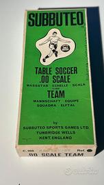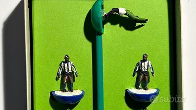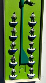 Calze blu. Numeri adesivi Subbuteo sulla schiena di alcuni giocatori. Nessun numero dipinto sulla schiena o sulle basi.