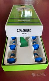 Bellissimo Subbuteo del Club de Strasbourg, stagione 1995/96. Il set è completo di 11 giocatori e porta. Le miniature sono in ottime condizioni, conservate nella loro confezione originale.