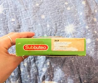 SUBBUTEO JUVENTUS / ASCOLI / UDINESE - REF. 717 Classica divisa a strisce bianconere del Subbuteo originale anni '90. DETTAGLI: Squadra: 11 giocatori integri, basi nere classiche in ottimo stato. Portiere: Asta originale integra. Box: Scatola verde originale con l'etichetta "717 Juventus Ascoli Udinese". Condizioni: Miniature perfette, pittura originale ben conservata. Un pezzo fondamentale per chi colleziona le squadre storiche del campionato italiano. Spedizione rapida e imballaggio curato