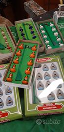 materiale anni 70' : 1campo 2 porte 3palloni 1 tabellone 3 squadre incomplete serie manuali . squadre complete Francia Barcellona Manchester utd Feyenord partick thistle. materiale nuovo: 1campo 2porte 2palloni squadre Italia Brasile Uruguay Olanda Argentina Germania. altri accessori