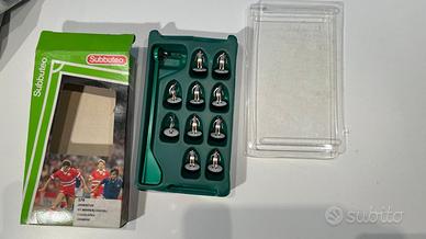 Subbuteo LW Juventus “A” in scatola “Giannini” con ref 579. Ottime condizioni. Nessun giocatore riparato, nessun numero dipinto. 22 EURO. Colleziono Subbuteo, ho varie squadre (HW, LW, qualche hybrid e zombie), set box (tra cui Munich 74), accessori, campi e cataloghi da vendere.