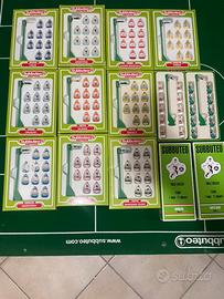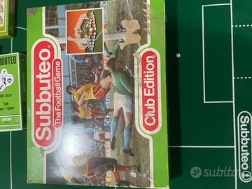 Vendo SUBBUTEO già fissato su tavola di legno, completo di ogni accessorio (recinzione per tutto il campo da gioco, guardalinee, arbitro, omino che batte il corner, raccattapalle, panchine, bandierine + 12 squadre completamente NUOVE: