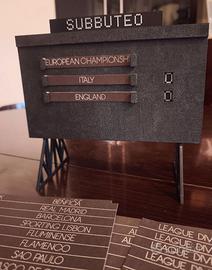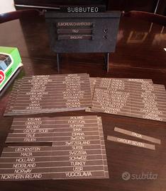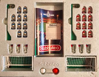 Subbuteo originale anni 80 mai usato con le squadre come da foto. Include tabellone partita originale Subbuteo con i nomi delle squadre