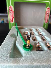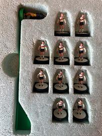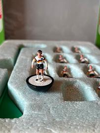 Subbuteo Ref. 681 West Germany (Italia '90) – Lightweight Vintage Vendo rarissima squadra Subbuteo Referenza 681 (Germania Ovest) originale degli anni '90, versione Lightweight. Si tratta dell'iconica divisa indossata dai campioni del mondo a Italia '90, un pezzo immancabile per ogni collezionista. Caratteristiche del set: • Condizioni: Ottime, miniature ben conservate con colori vivaci. • Integrità: 10 giocatori di movimento + portiere su asticella verde. Nessuna miniatura spezzata o rincollata (caviglie integre). • Packaging: Box originale verde con etichetta identificativa "681 West Germany" e interno in polistirolo originale in buono stato. Un pezzo di storia del calcio in miniatura, perfetto per completare la tua collezione o per tornare a giocare con un set d'eccezione.