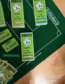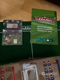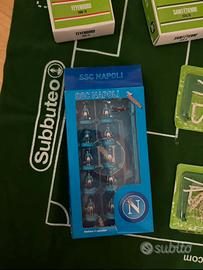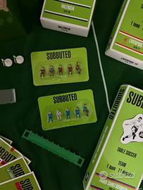 Vendo subbuteo completo di tutto, con campo, kit con due squadre rossa e blu, e due porte, quattro arbitri, quattro palline, quattro bandierine, altre due porte e altre due panchine, segna punti con i nomi di tutte le squadre e tutte le competizioni, cd con spiegazione delle regole e tattiche, 13 squadre e una edizione speciale del napoli, ognuna con