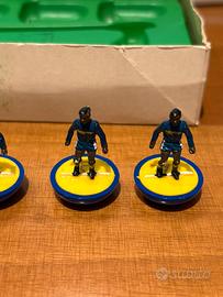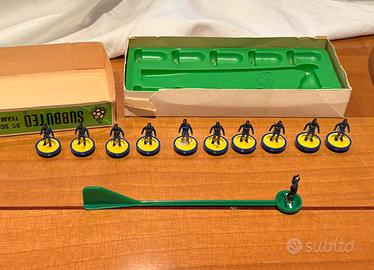 Subbuteo Table Soccer .00 Scale Team - Boca Juniors (Ref.295) produzione Subbuteo Sports Games Ltd - Tunbridge Wells (Kent, England), anni '60 / primi 70 set completo di 11 miniature originali, portiere su astina originale, basi blu e plastica originali. Le miniature presentano pittura originale d'epoca, con normali segni del tempo ma nessuna rottura, minuscoli segni a penna sia su scatola che sulle miniature. La scatola è originale e conservata, con lievi segni di usura coerenti con l'età. Lievissime imperfezioni come visibili bene in foto