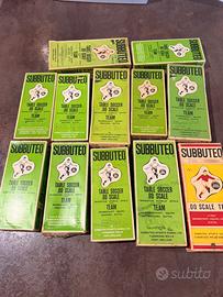 Vendesi in blocco lotto subbuteo 12 squadre anni ‘70, perfette, solo due giocatori con problemi come da foto, una testa mancante, una maglia scolorita dal tempo. Codici 15-45-46-55-67-92-99-100-127-134-171-Roma. Ritiro a mano.